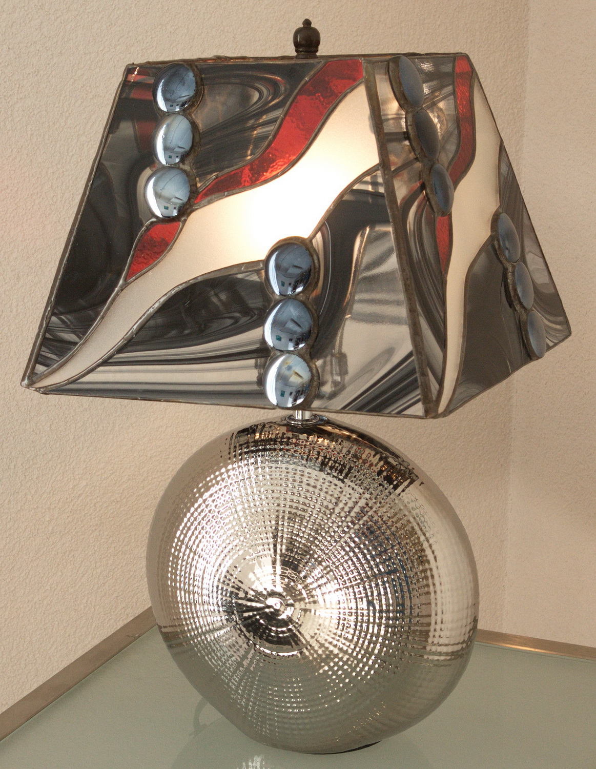 Les créations de Chantal et Gaby Glassey appartiennent au domaine de la sculpture et de l’objet fonctionnel. Leurs lampes en vitrail translucide et coloré nous transportent à l’époque de l’Art Nouveau et dans le goût floral des célèbres modèles Tiffany tout en s’inspirant aussi du langage plus rationnel de l’abstraction géométrique.